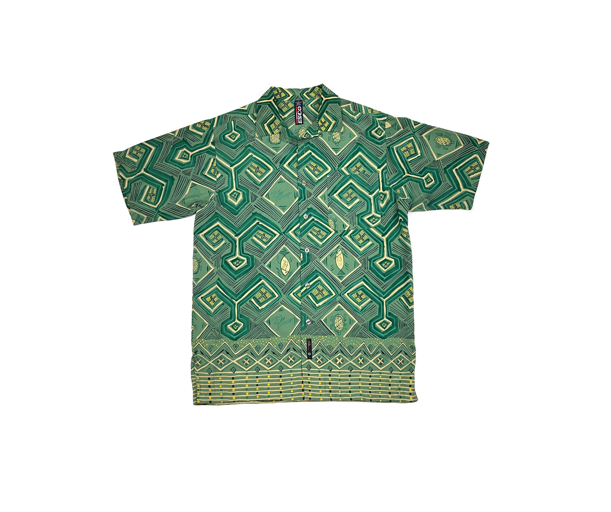 This stunning batik-inspired top was initially launched in 1999. It perfectly captures the iconic Hawaiian aesthetic of the late 90's, which swept through the lively streets of New York City. The piece flawlessly fuses tropical resort vibes with the emerging streetwear trend.