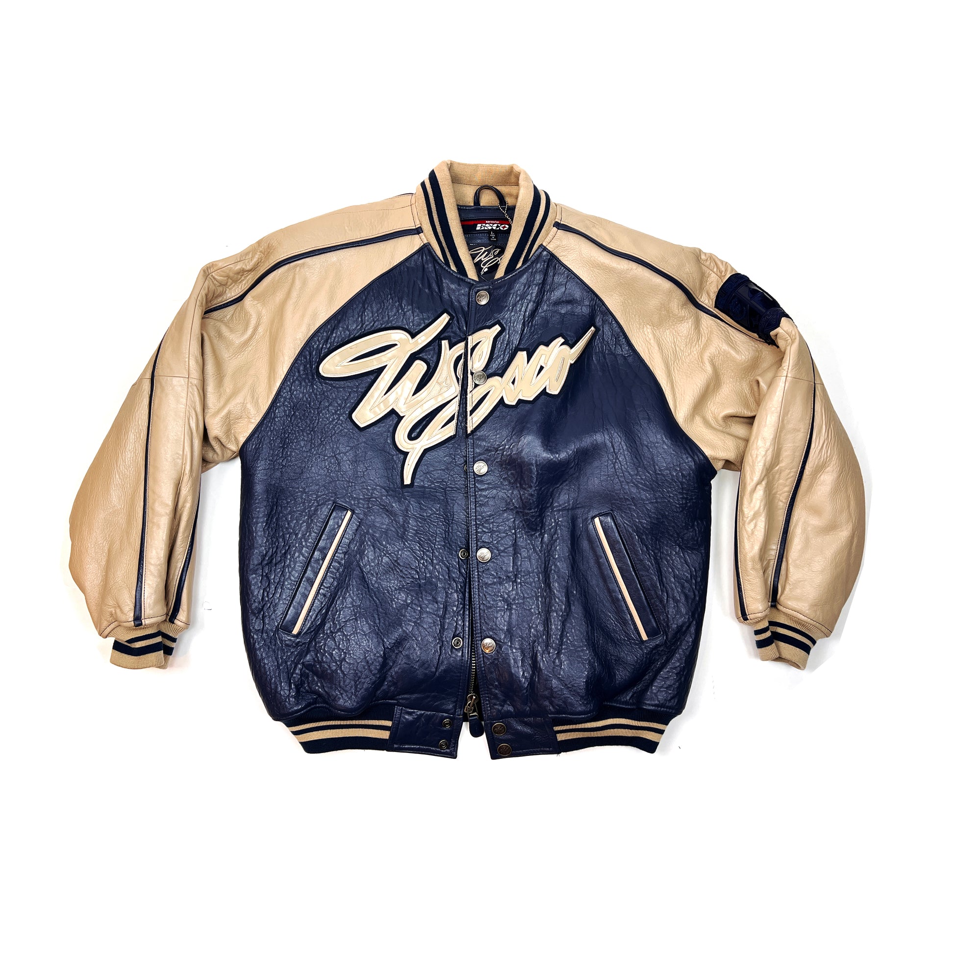 This unique archive piece is the infamous "WESCO" leather bomber jacket, featuring a navy and khaki color scheme. "NAS" himself was captured in this style during our debut fall photoshoot. The original hangtags remain intact, adding to the authenticity of this premium piece.